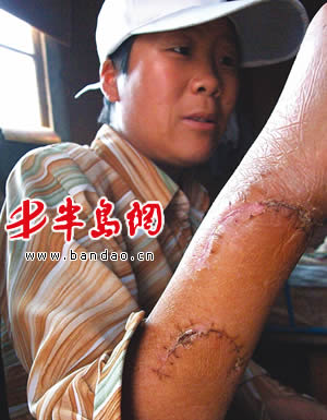 丁某的手臂几乎被砍断