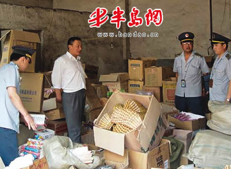 在仓库里,执法人员看到在100多平方米的仓库内堆满各式各样的物品,粗略统计一下各种假冒伪劣产品竟达到了1000多种。