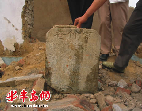 “我们这里发现了一块奇怪的石碑!”昨天上午,家住南渠社区的居民张先生打进本报新闻热线称,施工人员在他们社区居民废弃的旧宅里挖掘电缆时,无意中发现了一块石碑。在原南渠村西边的一片断壁残垣中,记者见到了这块石碑。该石碑长约60厘米,宽约40多厘米,石碑正上方刻着“紫竹庵”三个字,正反两面用小楷密密麻麻地刻着80多个人的名字。李沧区文物管理所艾所长仔细查看后认为,这块石碑是用来纪念出资修建紫竹庵的功德碑。根据经验判断,这应该是一块被从基座分离的残碑,从石碑上的货币单位来看,该石碑应该属于明清时期。他们将进行进一步研究,尽快破译该文物的“身世”。(请市民张先生来本报领取线索费30元)
