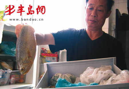 下午2时许,记者来到崂山区天林家园小区7号楼王先生家中,王先生取出冰箱里的一条化冻的鱼给记者看(如图):“停电四个多小时了,以后怎么生活啊。”记者采访时发现,该小区6号楼、7号楼、10号楼和11号楼120余户居民均被停电。不少居民向记者表示,他们交费都很及时,发生停电令他们感觉很意外。