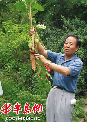 “五毒草”的危害引起了岛城众多热心市民的关注。6月 25日9时30分,百余人在市南区社区义工协会的组织下,来到徐家东山公园内(浮山的西麓山区)对商陆进行“围剿”,其中一位义工挖下的一棵商陆足足两米高。经专家鉴定,这棵商陆有十六七岁。市南区社区义工协会的李松梅女士告诉记者,由于商陆数量众多,今后这样的铲除毒草行动,他们每周都要进行一次。 文/图 本报记者 毕翔 实习生 孙统