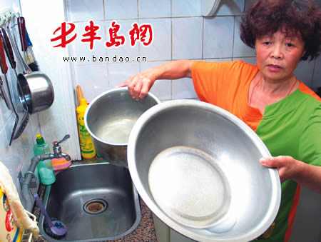 6月27日下午,在该小区8单元502户的于女士家中,记者看到,她家厨房里摆满了盛着水的大盆小盆,“这两盆干净水是用来做饭的,这几盆水已经洗过菜了是用来洗手的,那盆是洗澡水,特意留着冲厕所用的……”于女士向记者一一介绍。