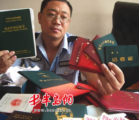 现场缴获的假印章达 400余个、半成品假证件100余张。两人人供认:一年前,他们加入老乡的制假集团,主要负责在马路上分发小广告或现场交易制好的假证件,平均每天可挣10到20元。今年3月起,夫妻俩另起炉灶,从外地购置了假印章、假证件皮等简易的制假设备,至今已制售各类假证件 50余个,非法获利8000余元。
