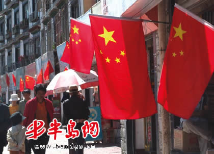 上午,记者出门时发现,拉萨市的大街小巷一夜间挂满了国旗及彩旗、横幅等。“热烈庆祝青藏铁路通车试运营”、“青藏铁路火车进我家,我要处处爱护它”、“西藏的明天会更好”等大型红色条幅,拉满了拉萨街头,拉萨市的各机关单位、学校等,也将街头扫得干干净净。