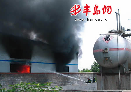 半岛网7月7日讯(记者 刘纯来) 今天上午10时20分许,即墨市北安街道办的一塑料制品公司突发大火。由于该公司一侧紧靠一家液化气站,火灾现场危机四伏。迅速赶来的消防人员冒险冲进危险地带,一边给液化气罐降温,一边灭火,一个多小时后终于将大火扑灭,成功排除了险情。