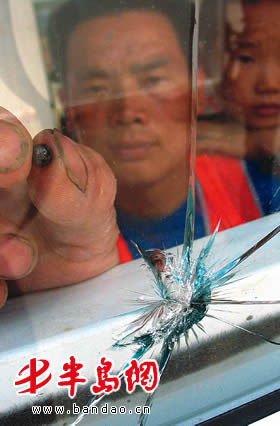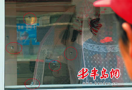 7月6日凌晨2时许,家住和兴路的环卫工人朱文强正在熟睡中,突然窗户玻璃发出3声脆响,3粒钢珠破窗而入,所幸未伤到人。这样惊险的事朱文强已经经历过两次了。几次莫名遭袭,朱文强只有10岁大的儿子吓得都不敢回家了。打钢珠的人是恶作剧还是报复不得而知。在朱文强房子的玻璃上,记者清楚地看到几个弹孔(见图1),朱文强也给记者展示了射进屋里的钢珠(见图2),半厘米厚的玻璃被钢珠打出许多洞,威力可想而知。记者从警方了解到,民警将加大对该区域的巡逻,市民发现线索也可以向110举报。 本报记者 何毅 摄影报道
