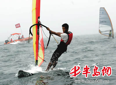 运动健儿驾帆板奋勇争先。