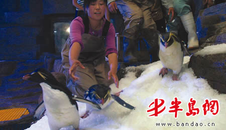 为迎接这些远道的“贵客”,青岛极地海洋世界特意为它们营造了一个面积约 200多平方米的新家,里面模仿了南极企鹅老家的景色。记者在企鹅的新居看到,到达刚落成的企鹅馆后,这些极地海洋世界的新“主人”个个精神十足,一起跳入水中畅游起来。
