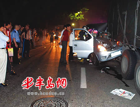 “小面包的速度也不是很快,可能是司机走神了,没有注意到停靠在路边的货车。当司机发现货车时,赶紧打方向盘,可是已经无济于事了,只听见‘砰’的一声,小面包钻进了货车的底部。”市民范先生告诉记者,当时他看到坐在副驾驶座上的一名妇女从车门里跳了出来,她试图把司机拖出来,但没有成功。