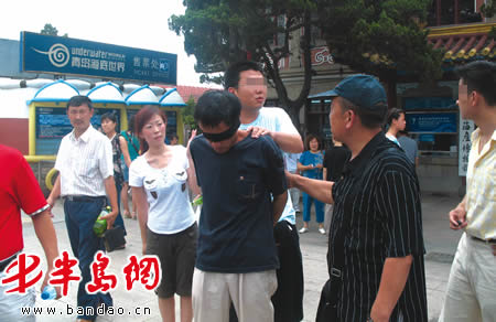“这个小偷一看就是个老手。”见小偷装作无所事事的样子挤在游客中伺机下手,一名反扒队员告诉记者:“好戏马上就要上演了!”果然,小偷很快“盯”上了一个小女孩的背包,他刚从小女孩的包里拿出钱包,民警便疾步上前将其摁倒。小女孩的母亲高女士告诉记者,她们是从淄博来的,真没想到青岛的警察水平这么高!
