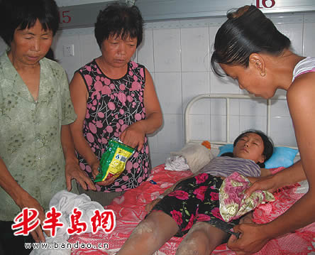 7月16日下午2时许,记者闻讯赶到即墨市蓝村镇医院时,潘先生和 14岁的女儿潘晓萱已经脱离危险。记者看到,潘先生的后背掉下很大一块皮,身上多处挫裂。潘晓萱的身上有不少沙子,皮肤也多处擦伤。