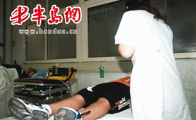 “有个孩子喉咙几乎被滑板割断了,现在正在医院抢救!”今天下午2时许,记者接到市民刘先生的电话赶到青医附院时,受伤男童已经被送进手术室抢救,孩子的父母和几名亲戚也闻讯赶来,焦急万分的母亲在手术室外失声痛哭。