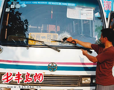 遭袭击的一辆大客车