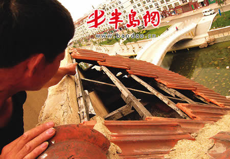 纪先生还说,现在只要轻轻碰一下,这些瓦就会坠落,而为了防止发生瓦片砸伤人的事情,他们自掏腰包进行过简易的维修,可是治标不治本啊。
