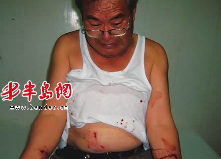 据路大爷介绍,他每天早晨都有逛海边的习惯,昨天早晨7时许,他逛到团岛后海码头利天游艇俱乐部旁,想进去看看同伴是不是在钓鱼,这时突然跑出来一条大黑狗,长得像藏獒一样,很凶猛,冲着路大爷的大腿和左胳膊就咬,并撕碎了他的衣裤。路大爷赶紧用右手抓着狗脖子上的项圈,狗却疯狂地咬他的左胳膊,他拼命拖着狗走到这家游艇俱乐部的办公室,并把狗推进去关上门。这时,路大爷身上沾满了血,他赶紧打的赶往市第五人民医院。