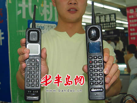 半岛网7月25日讯 已经进入通讯博物馆的大哥大手机近日又重现岛城街头。今天,记者在台东一家通讯商场内看到两个型号的大哥大手机正以600元至 700元的价格销售。据了解,大哥大在岛城一经上市便受到了年轻人的喜爱,但工商部门提醒消费者这种产品属于三无产品。