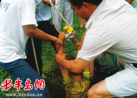 半岛网7月27日讯(实习生 李兵 记者 程爱华) 7月26日14时,在平度市崔家疃村附近的草坪上,一个10岁男孩在玩耍时不慎落入草坪上一口 6米深的枯井中。附近群众立即展开营救,在110民警的配合下,小男孩最终被救起。