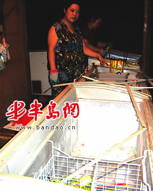 半岛网7月30日讯(记者 姜瑞胜) 今天下午4时50分, 4名男子手持棍棒,在10秒钟内砸烂了商城路综合市场一冰糕批发部的5台冰柜(上图)。此后,4名歹徒驾驶一辆白色轿车离开了现场。