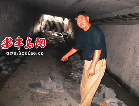 半岛网8月1日讯(记者 刘鑫 实习生 李勇) 四流中路一地下通道堆积大量砖头却没有任何的警示标志,致使夜晚从此经过的20多名路人先后被堆积的砖头绊倒受伤。记者调查发现,这个地下通道存在诸多隐患,给过往的行人带来很大不便。对此,沧口火车站有关负责人表示会逐步解决通道内存在的问题。