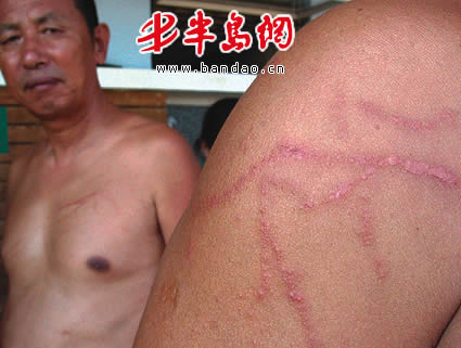 据青医附院急诊科的张大夫介绍,从 7月底开始,急诊科室每天都要接待被海蜇蜇伤的患者 10多名。海蜇的触手上有大量刺胞,刺胞内含有毒液,人体接触到后,刺胞可刺入人的皮肤,引起刺胞皮炎。受伤较轻者,半天或一天过后皮疹即可自然消退;受伤较重者,需10天左右才痊愈;若全身多处被海蜇蜇伤,患者通常会在几个小时内出现畏寒、发热、腹痛、恶心、呕吐和出冷汗等症状,少数人还会出现胸闷、血压下降及呼吸困难、肺水肿等并发症。