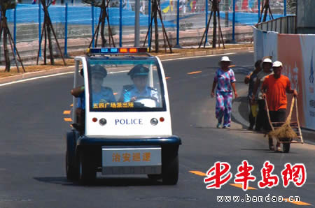 民警在帆船中心巡逻 本报记者 何毅 摄