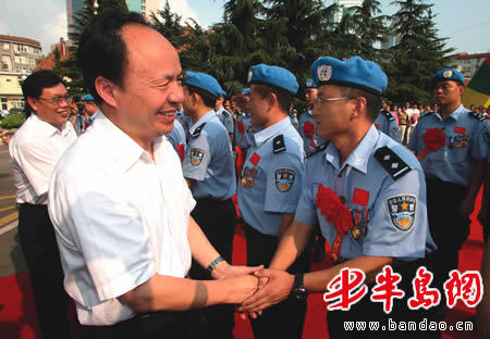 8月5日,第三期维和警察防暴队先遣队先行返回,其中包括本市的 5名队员。8月13日,所有维和警察全部启程回国,岛城的17名警察于今天抵青,与阔别8个月的亲人相见了。