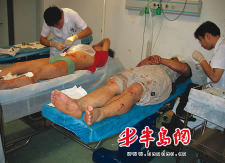 医生告诉记者,4名伤者目前看都是外伤,医生为4人做了止血和消毒治疗,伤势情况还要进一步检查才能确定。今天下午,记者从医院了解到,4名伤者目前基本没有生命危险,工人所在单位有关负责人正在妥善处理此事。(请王先生来本报领取线索费80元)