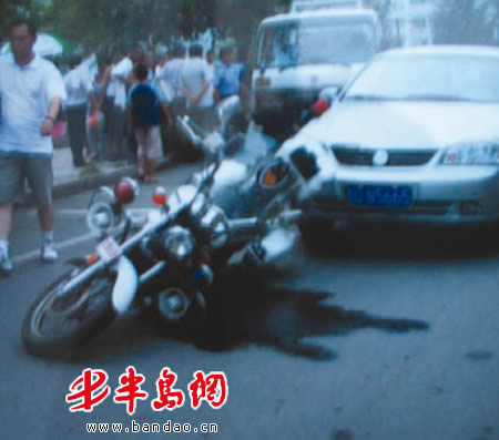 据办案民警介绍,8月15日下午2时30分,正在宁夏路与银川西路值勤的市南交警大队巡逻中队交警王洪寿,突然看到一辆车号为鲁 UN5665的白色轿车正在不断按喇叭,严重影响周边居民,由于此路段禁止鸣笛,于是王洪寿向前叫停白色轿车,指出这是违法行为,并准备给予处罚 50元。谁知车上的青年司机对王洪寿骂骂咧咧,并威胁不要开罚单,要不然就撞死他。王洪寿没有惧怕威胁,很有礼貌地给其开具了罚单。随后,王洪寿驾驶两轮摩托警车往大尧一路方向继续巡逻。