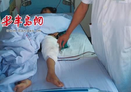 最尴尬的事情莫过于小蕾萍去上学,因为怕耽误学习,小蕾萍每天都要提前几个小时跳到学校,可面对同学们异样的眼光,小蕾萍几乎每天都是满脸泪水地回家。也正是因为这样,无奈的父母竟然做出了决定:截肢!靠假肢让孩子重新站起来。为了便于照顾女儿,8月10日上午,这几年一直在青岛打工的父母千里迢迢把小蕾萍接到青医附院进行治疗。