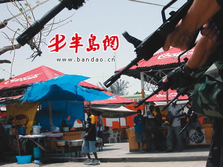 刚到海地不久,一次,我与几名队员乘坐一辆无防护措施的敞篷吉普车出外勤,巡逻至一个广场时,突然前方不到30米远的地方发出三四声枪响!广场上的人四散跑开,有人乘机投掷石头、瓶子等杂物。我们将车子拐到一个安全的地方,再迂回时发现,原来是海地警察在开枪示警。