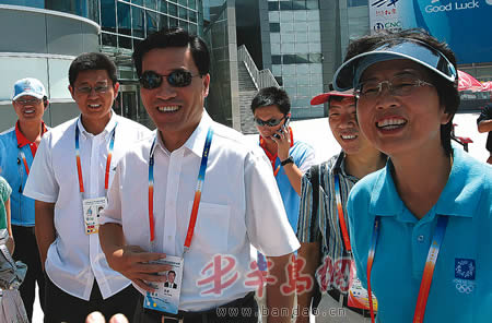 上午11时许,运动员们第一个报名小高潮刚过,市长夏耕和副市长臧爱民一行便走进了运动员中心媒体大厅。据组委会有关负责人介绍,自从8月4日本市召开“全市总动员 办好帆船赛”动员大会后,夏耕市长每天都要来帆船中心视察。