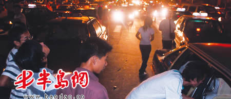 “沿着香港东路走下去,啤酒城附近两站路的路边站满了等待打车的人,我看,就是再等上一小时也难打上!”从8月19日晚10时许开始,不断有市民向记者反映,称在晚10时至 12时这段时间里,啤酒城外围各路段出租车严重“短缺”,加上部分出租车司机“挑肥的拣瘦的”,使得在夜色中苦苦等待打车的人站了足有一公里长!