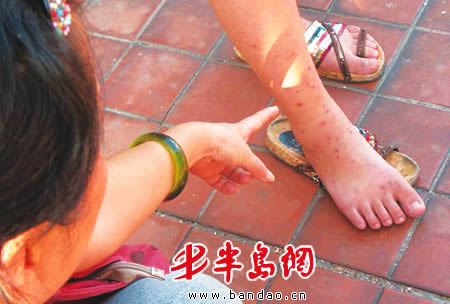 芬芬脚上被跳蚤咬了一片疙瘩