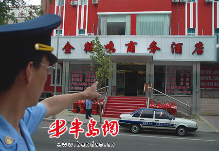 今天上午,市工商局市南分局接到某旅行社的举报,称近日该旅行社预订了号称“三星级”的金鹤鸣商务酒店,但当客人入住时,发现该酒店的硬件设施、服务都远远低于三星级的标准。旅行社遂投诉到工商部门:“他们还没有任何的营业执照,而且不给开发票。”