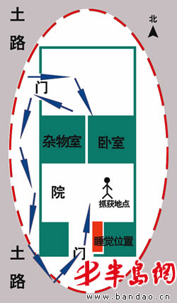 8月21日晚11时许,焦延强队长带领 3名民警,与郯城来的 4名民警一起,包围了梁士峰在河南庄的暂住处,蹲守在附近进行观察。