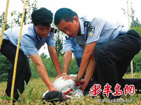 该男子边跑边扔掉了手里的刀和钱,一会儿跑到校园绿化灌木丛里,一会儿拐进学校操场附近,之后又顺着教学楼东跑西奔转圈,边跑边往后张望。在学校里兜转了几圈、跑了大约2000米后,该男子终于体力不支,步子明显放慢了。民警刘亮亮见状奋力冲向前去,猛跑几步,紧接着一个有力的跳跃,一下子将该男子扑倒在地,随后赶到的民警立即上前按住了该男子。据了解,民警刘亮亮前不久在城阳区政法系统运动会上,一举夺得了5000米长跑冠军。