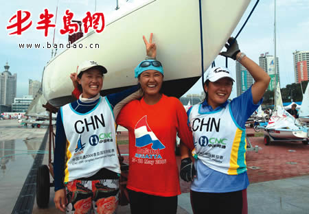 青岛天泰鹰铃级帆船队一号船三姐妹:宋夏群、李晓妮、张传双
