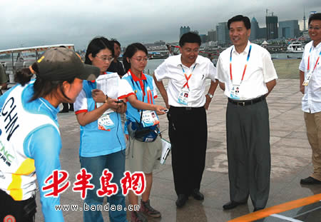 8月25日,青岛国际帆船赛进入第五天,凌晨的一场大雨让海面上的风力增加了不少,下午1点,海上风力达到了5米/秒,下午3时~4时又增大至6米/秒,这是帆船比赛的最佳风力。借着这个好天气,中国的男子帆板“三剑客”继续良好发挥,占总排名前两位;女子帆板孙丽美位居第二,殷剑排名上升至第四位;天泰鹰铃级帆船队1号船暂列第三。