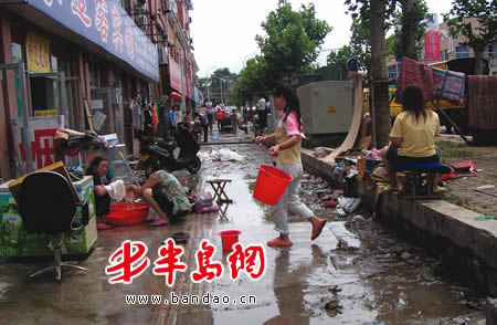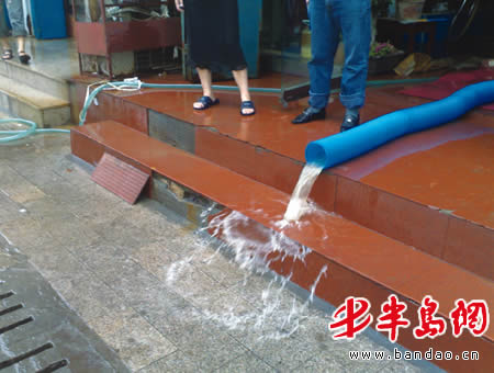 昨天上午,记者在杭州路9号看到,300米长的路面上仍然有大量污泥,附近30家网点业户有的用抽水泵往外抽水,有的在清理室内的污泥。一家公司的负责人说,昨天早晨8时,他来到公司门口时发现,门口积满了污水,紧锁的卷帘门也变了形,他打开门发现里面的污水没过膝盖,电子产品全被水浸泡了。“公司直接损达10余万元!”这名负责人说。记者调查发现,所有业户的产品都遭遇同样的“厄运”,还有一些店里的钱也“随水漂出”。