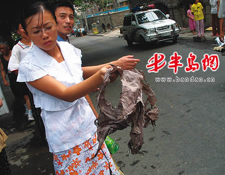 孩子当时穿的衣服已被烧得不成样