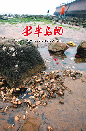 “第六海水浴场沙滩上突然出现了不少死蛤蜊,太奇怪了。”今天上午,市民孙先生向记者反映,六浴沙滩上突然出现了大片的死蛤蜊。在六浴,一名环卫工人告诉记者,这些蛤蜊是从昨天开始出现的,有的死蛤蜊已经发出了臭味,为了避免造成污染,他们正在加紧清理。