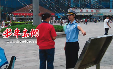 今天下午2时,火车站广场执法人员发现了乱吐口香糖的游客秦某,对其处以20元的罚款。“对有随地吐痰、乱扔杂物等不文明行为的市民或游客,最高可罚款200元。”至今天上午,市南区城管执法人员在火车站广场、五四广场、音乐广场,这三大广场设置了十余处不锈钢制作的警示牌。警示牌上写明:“公共场所禁止随地吐口香糖、吐痰、便溺、乱倒粪便、污水、乱丢瓜果皮核、纸屑、烟蒂和包装物等杂物。违者处以二十元以上五十元以下罚款;情节严重的,可以处以一百元以上二百元以下罚款”。在警示牌设置后,执法人员现场警告和处罚了73名不讲文明的市民或游客。