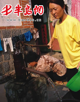9月2日下午2时许,记者在胶南市六汪镇一个偏僻的小山村——野潴村里找到了宋瑞仙的家。映入眼帘的是石头垒起的破旧院墙和四间低矮的平房,透过敞开的院门,记者看到了正在院子里吃力地从井里汲水的宋瑞仙。