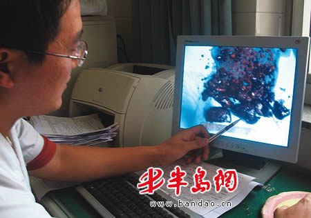 医生查看从王女士腹中清出的结石