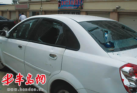 半岛网9月5日讯 今天上午,山东海利丰律师事务所的国主任发现,自己放在楼下的轿车被人砸烂(上图)。国主任告诉记者,自己刚代理了一场官司,7月9日晚上,他就在家门口被歹徒打伤。官司刚打赢车又被砸,这应是恶意报复,他已向警方提供了怀疑对象的资料。