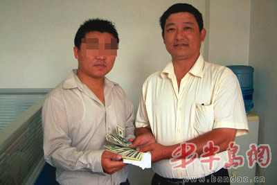 失主终于找到了,刘总经理让李先生尽快过来取回皮包。9月 8日下午 1时许,李先生急匆匆地从城阳赶了过来,看着自己的皮包失而复得,李先生急忙拿出一叠美金递给刘师傅,被刘师傅婉言谢绝了。