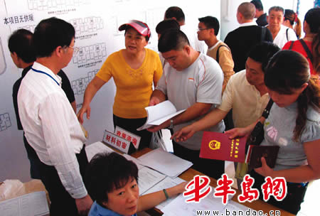 半岛网9月13日讯(记者 陈修华) 今天是本市首批普通商品房正式申购的第一天,位于重庆南路86号和重庆中路 967号的两处普通商品房项目一亮相就吸引了 1400多名市民到场办理申购手续,其中六成为无房户。