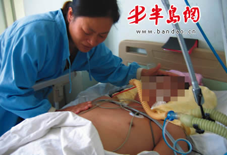 在医生的许可下,记者和孙女士一起进入ICU病房。记者看到,躺在病房上的晓晓一直处于昏迷状态。